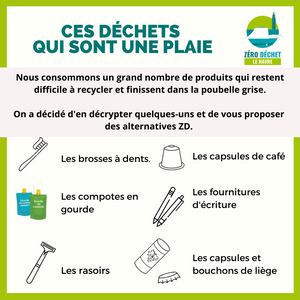 Ils sont non recyclables et sont souvent à usage unique ou limité dans le temps ce qui fait qu'on en jette beaucoup. C'est un fléau alors que des alternatives existent et l'équipe LH ZD a souhaité vous en présenter